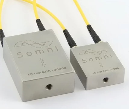 Geniş bir uygulama alanı için artırılmış hassasiyete ve sağlam paslanmaz çelik tasarıma sahip AC 80 NT fiber optik ivmeölçer.