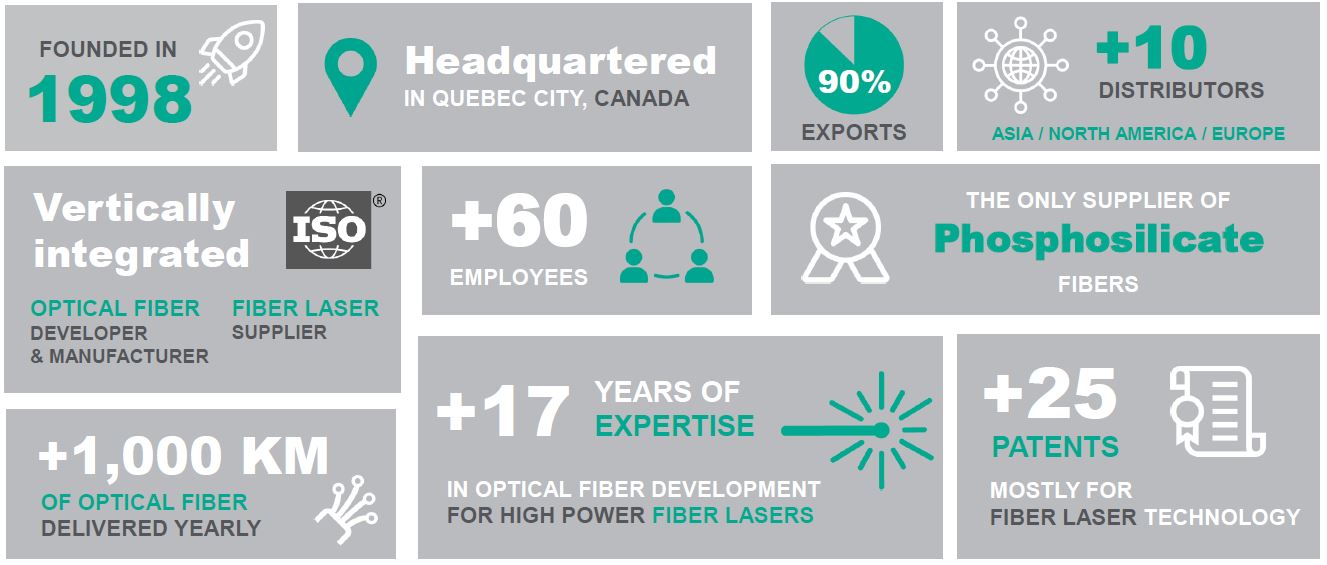 It brings together advanced fiber laser technology with phosphosilicate fiber, which opens a new era in active fiber technology and is protected by Coractive patent, in new generation continuous wave and pulsed lasers.